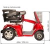 Čtyřkolový elektrický invalidní vozík s malým košem. Tento vozík je uzpůsoben pro potřeby osob se zdravotním postižením. Pomocí páček na řidítkách volíte rychlost pojezdu, dále máte možnost max. rychlost omezit potenciometrem. Tento model nabídne úložný prostor v nákupním koši na řidítkách a velice snadnou možnost nasedání, díky otočnému a polohovatelnému sedadlu. Dobíjení je řešeno běžnou 230V nabíječkou, která je součástí balení. Vozidlo je vhodné i pro držitele průkazu TP,ZTP a ZTP/P.