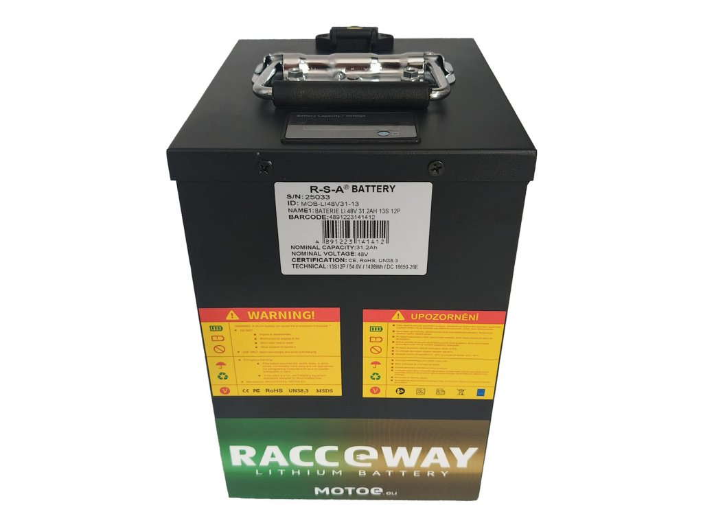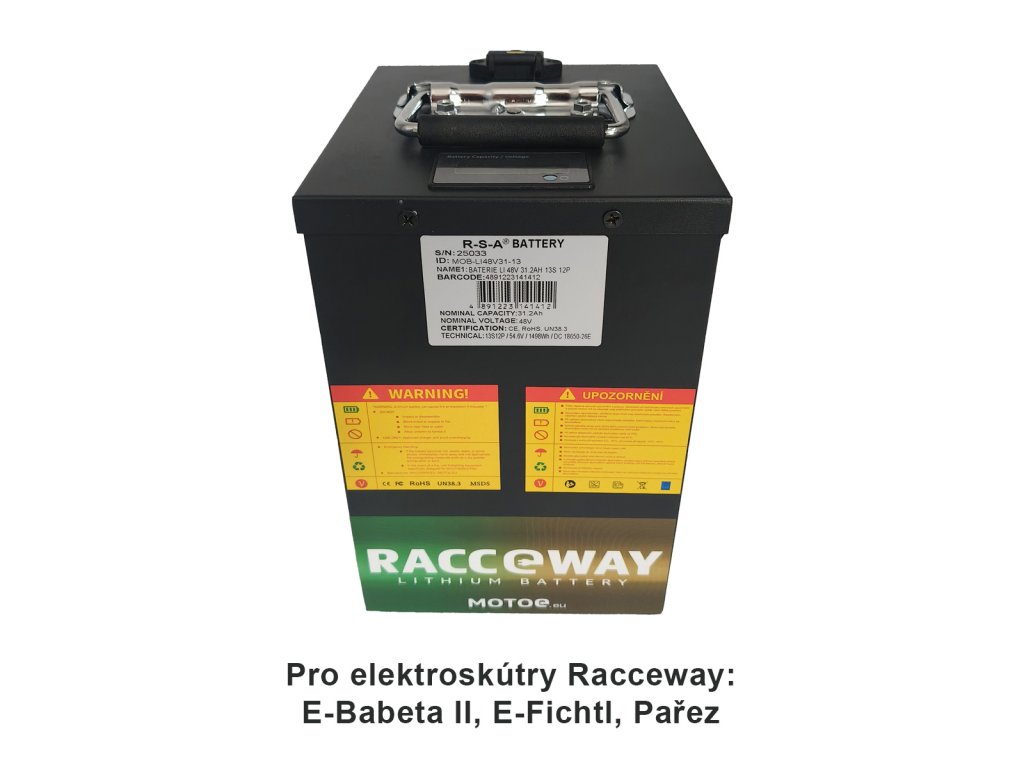 POZOR, pokud nahrazujete olověnou baterii, je NUTNÉ k tomuto produktu dokoupit nabíječku na lithiové baterie RACCEWAY®, doporučujeme kód produktu MOTOE-NAB-LI-6 nebo pro rychlejší nabíjení kód produktu MOTOE-NAB-LI-4