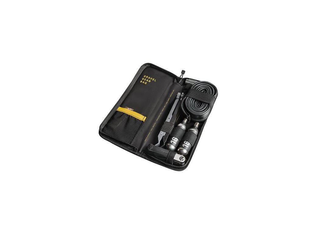 Kompletní sada na opravu bezdušových pneumatik / huštění CO2 pro silniční a turistické nadšence zabalená do elegantního pouzdra s organizérem namontovaným pod horní rámovou trubkou. Vnitřní organizér udržuje vybavení úhledně a bezpečně na místě. Obsahuje Tubi 11, Power Lever X, 3 ks 3,5mm x 5cm špuntů na opravu pneumatik a hustilku CO2 AirBooster s dostatkem místa pro dvě 16g CO2 bombičky a náhradní duši do 700 x 40c.