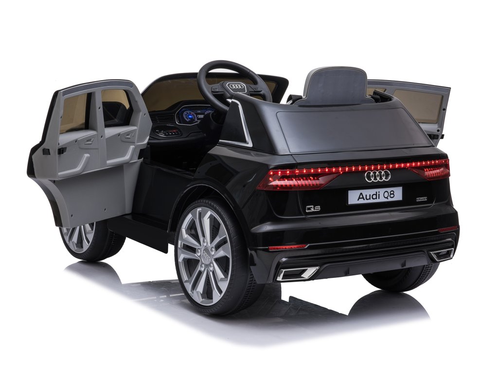 - Luxusní design: Autíčko je věrnou replikou skutečného Audi Q8, včetně autentického tvaru světel a moderní úpravy sedačky, otevíracích dveří a působivých disků, které dotvářejí jeho realistický charakter.