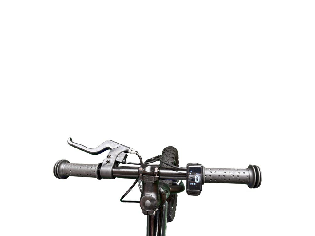 Ukazuje rychlost, stav baterie i světelný indikátor. Součástí je také plynulá plynová páčka.