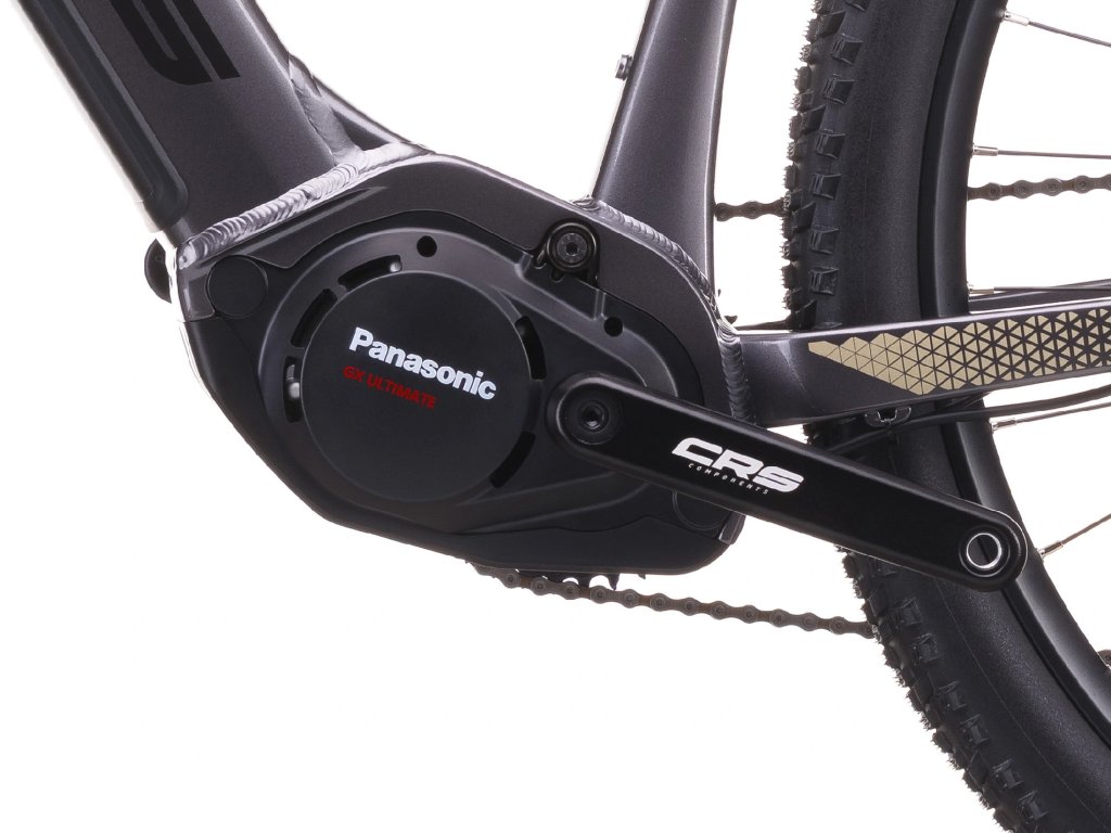 Hnacím srdcem e-biku je středový motor PANASONIC GX Ultimate s krouticím momentem 95 Nm. Díky tomu zvládneš prudká stoupání i technické pasáže s lehkostí, bez přepínání do nižších převodů každých pár metrů.