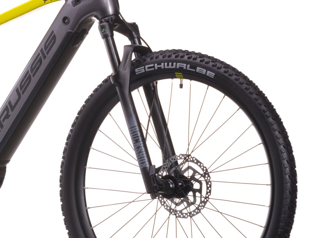Díky plášťům SCHWALBE SMART SAM Performance projede elektrokolo terén hladce a efektivně – zvládne kořeny, štěrk i lesní cesty s větší jistotou a menší námahou. K tomu odpružená vidlice ROCKSHOX FS Judy Silver TK Solo Air se zdvihem 100 mm, která tlumí nerovnosti a přispívá k vyššímu komfortu i kontrole.