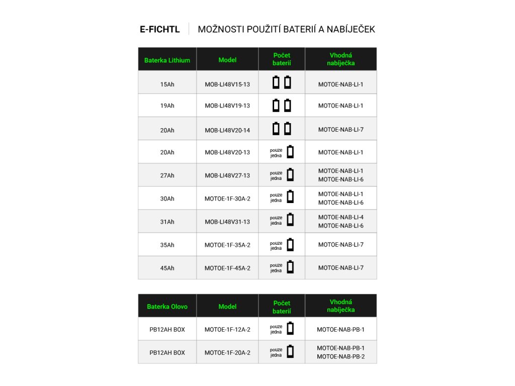 - Baterie kapacita: 12 Ah/20Ah/30Ah Lithium