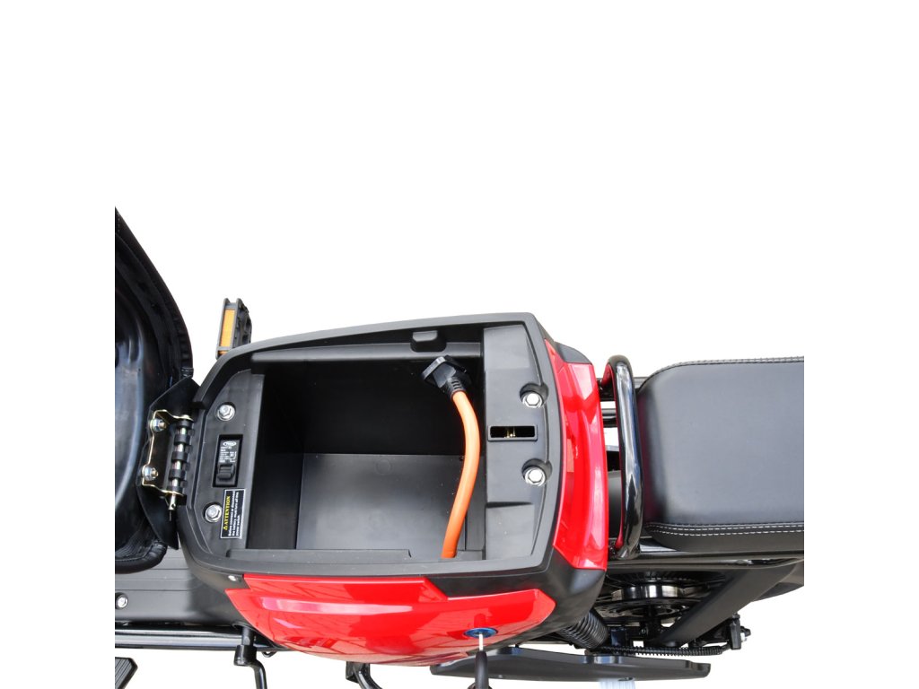Skútr je vybaven LITHIOVOU vyjímatelnou baterií o kapacitě 31,2Ah, kterou si můžete odnést domů nabít, je však možnost dokoupit a zaměnit za lithiovou baterii 40 Ah s dojezdem přes 100 respektive 150km.