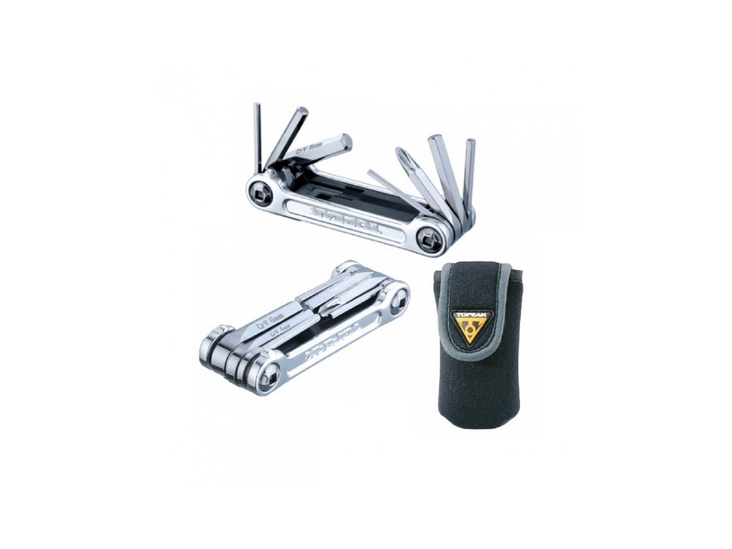 Topeak Mini 9 je kvalitní funkční nářadí, které vás jistě potěší svou nízkou hmotnosti a skladností. Nářadí Topeak Mini 9 je dodáváno včetně pouzdra z neoprénu.