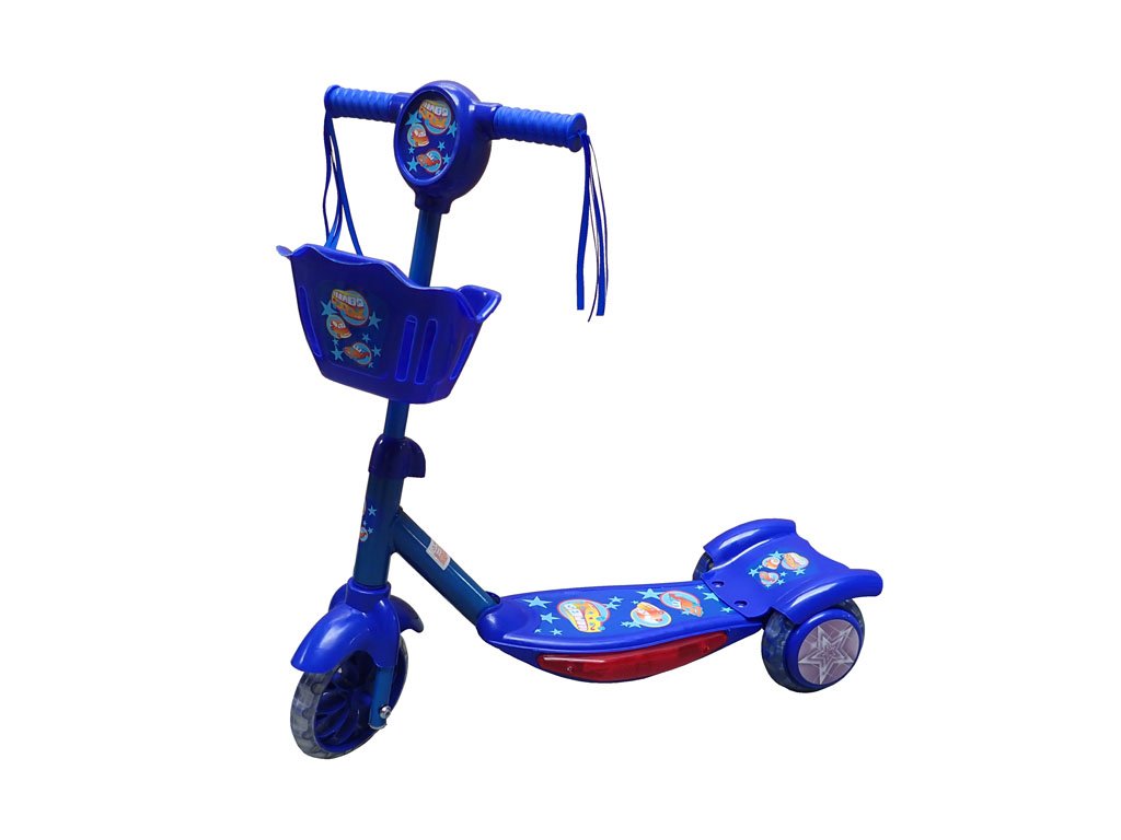 Koloběžka dětská, skládací, je určena od 3 let. Materiál je ocel + plast. Kolečka jsou plastová, o průměru - přední 15 cm a zadní 11 cm. Rozměry výrobku - 54 x 21 x 58 cm, délka stupátka, ( plocha pro nášlap nohy ), je 24 cm. Hmotnost koloběžky - 2,1 kg. Nosnost výrobku 30 kg. Motiv nálepek se může lišit.