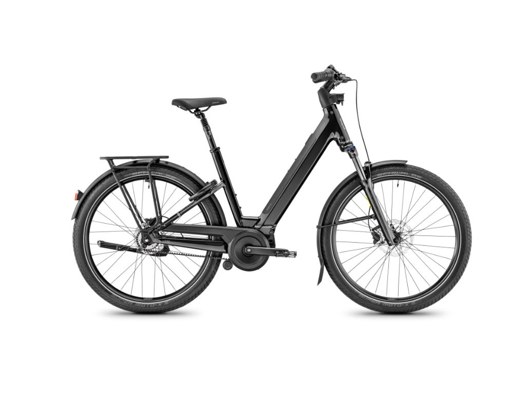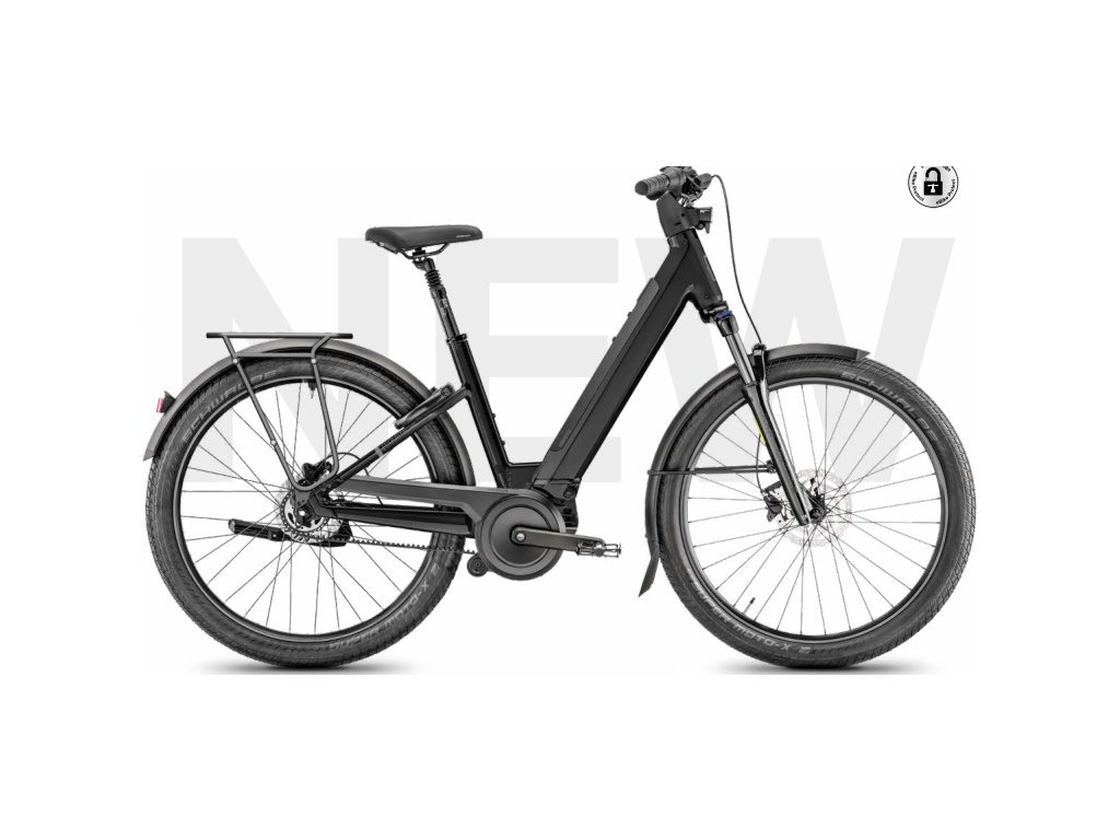 Samozřejmostí je plná výbava včetně nosiče MIK HD, blatníků, AXA zámku a systému Blok + Moustache Protect Option, který zajišťuje bezpečnost a praktičnost pro každodenní použití.
