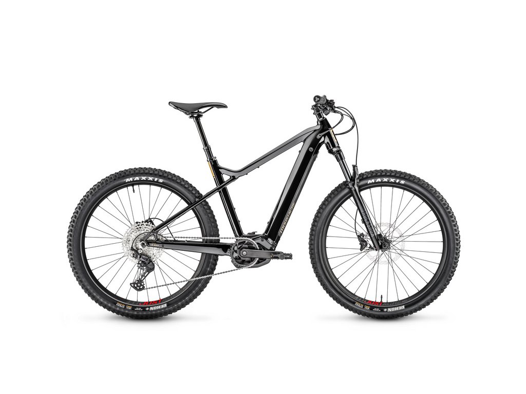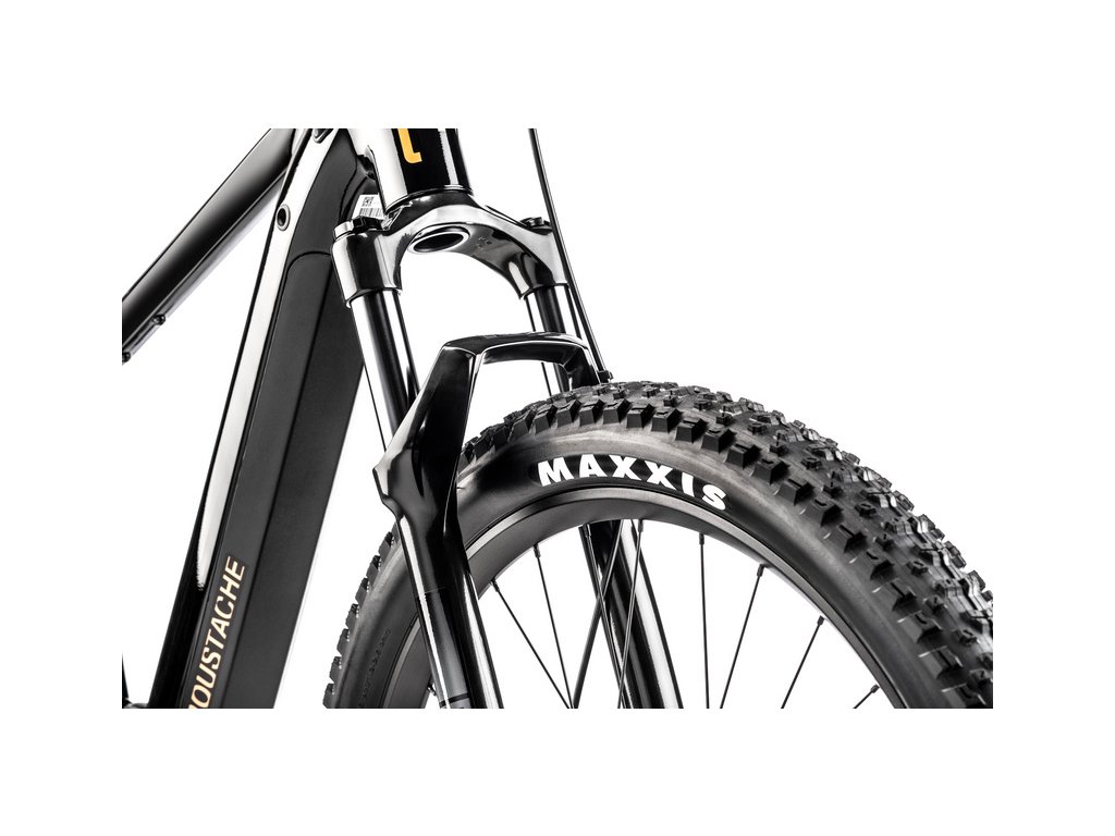 Horské elektrokolo MOUSTACHE Samedi 27 Off 4, osazené výkonným motorem Bosch Performance CX a integrovanou baterií PowerTube 625 Wh. Veškeré jízdní údaje se zobrazují na barevném displeji Kiox 300 uprostřed řídítek. Odpružená vidlice Marzocchi Bomber Z2 zajišťuje komfortní jízdu a pohlcování nárazů na nerovnostech a řazení Shimano Deore s 11 převody pak přesné a spolehlivé řazení. Pro zvýšení komfortu a ovladatelnosti je tento model osazen i teleskopickou sedlovkou.