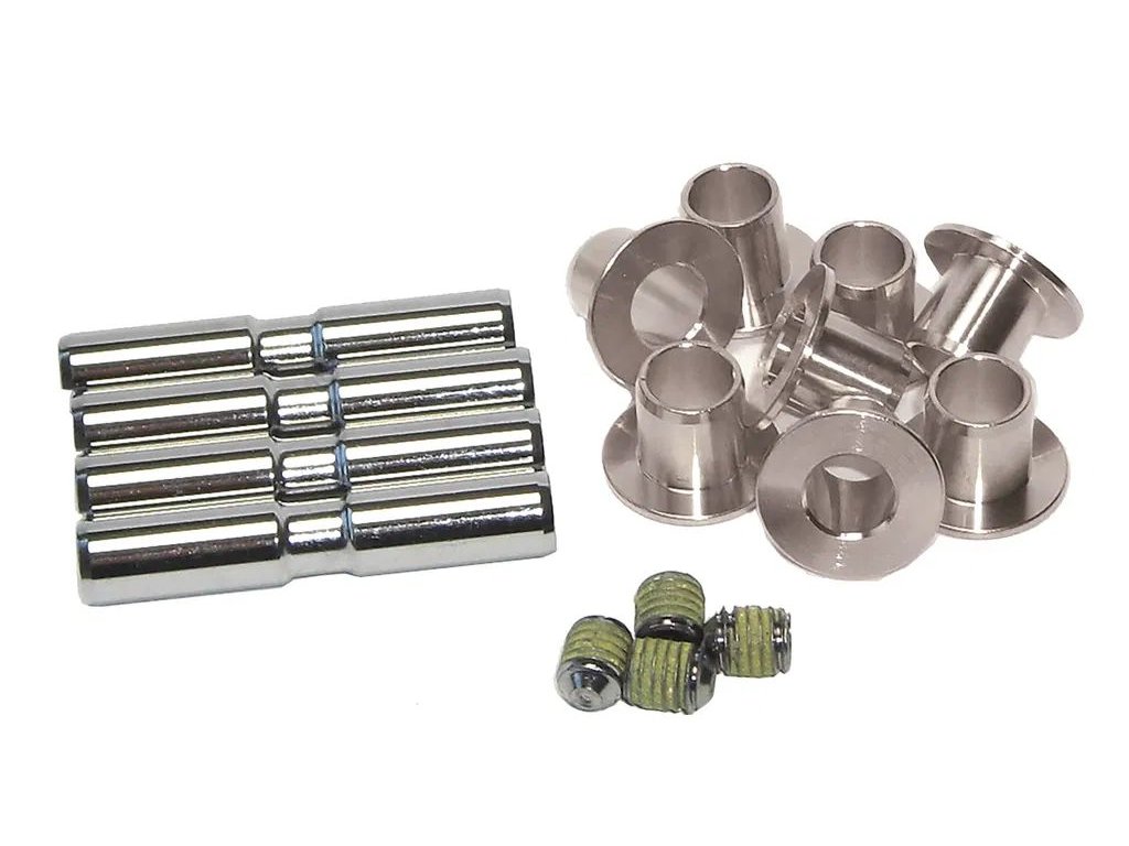 Hmotnost (kg): 50 gramVýrobce: SR SuntourBalení obsahuje: Osy (4 kusy), mosazné zdířky (8 kusů) (4 ks) zajišťovací šroubyBarva: stříbrná