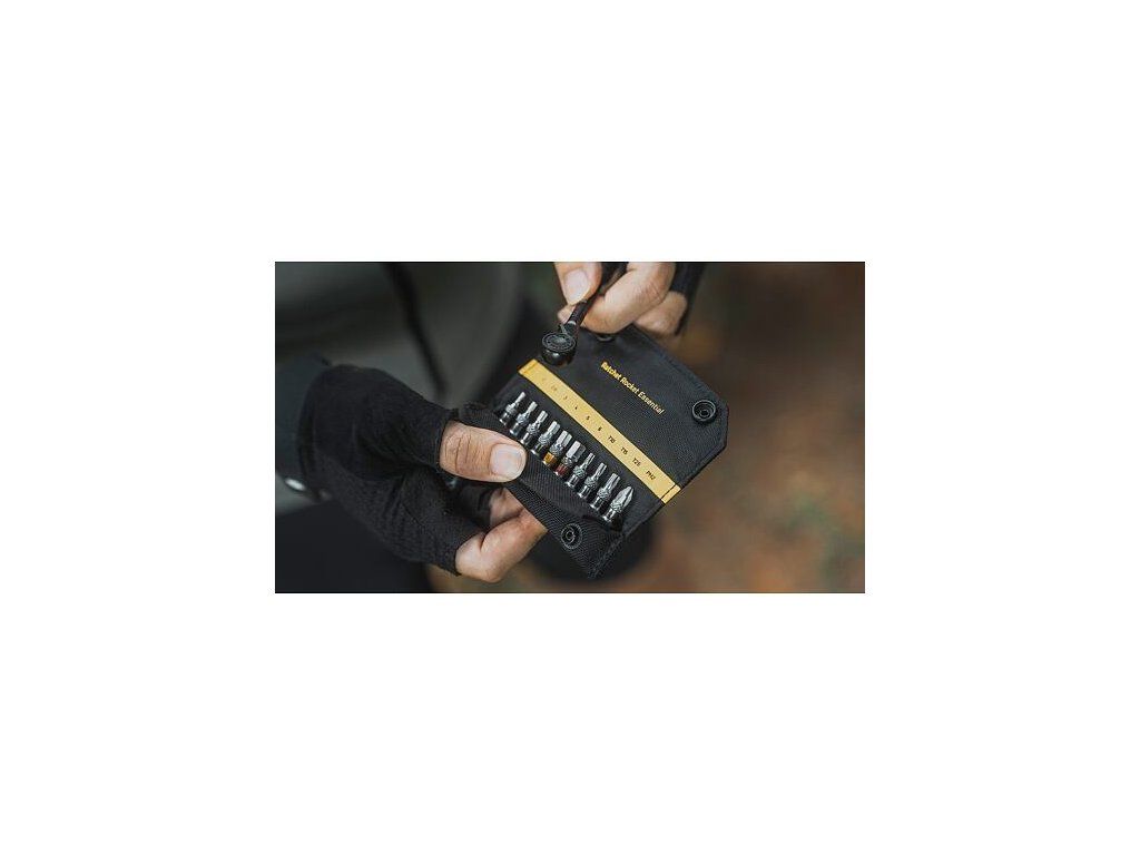 Velmi kompaktní sada ráčnového nářadí z CNC obráběného hliníku s 10 bity pro každodenní údržbu.