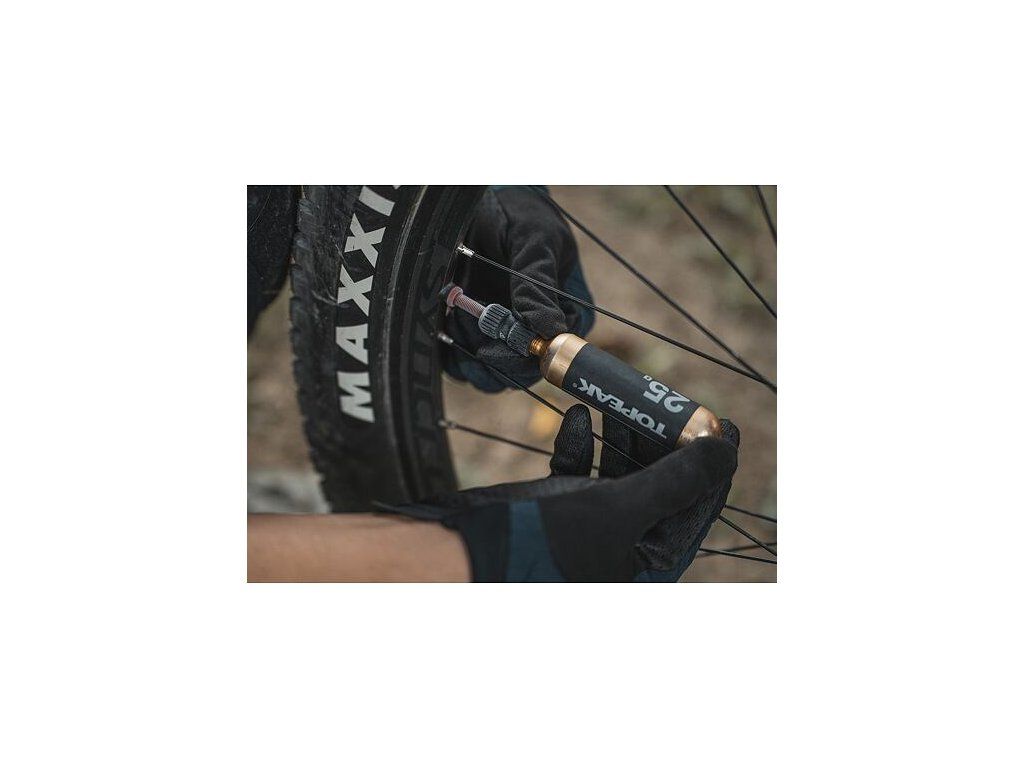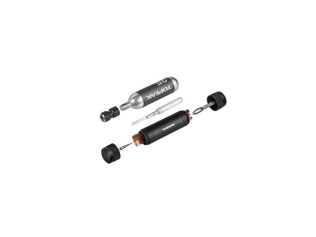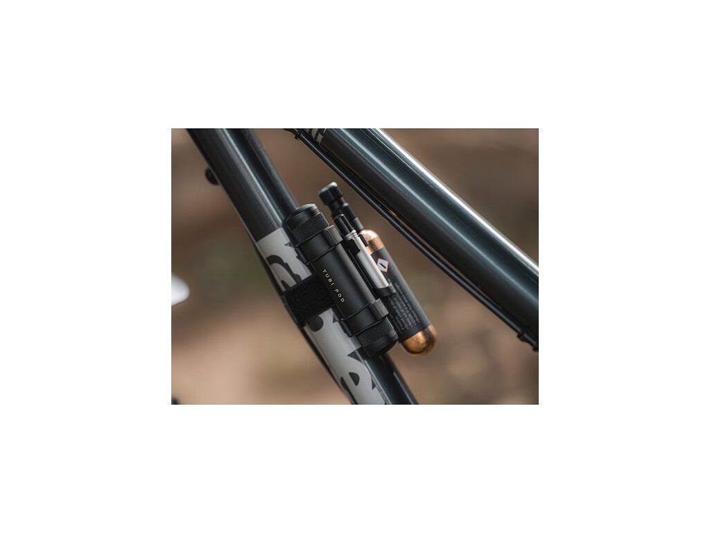 Kompletní sada pro opravu bezdušových pneumatik s CO2 hustilkou pro horská kola. Nástroje pro bezdušové opravy jsou integrovány do koncovek kapsle, které mají vroubkovaný povrch zajišťující lepší přilnavost při opravách pneumatik. Součástí balení jsou tři knoty, nůž s držákem a Nano AirBooster s 25g kartuší CO2. Vše upevněno na montážním modulu, který lze připevnit na rámovou trubku nebo sedlovku.