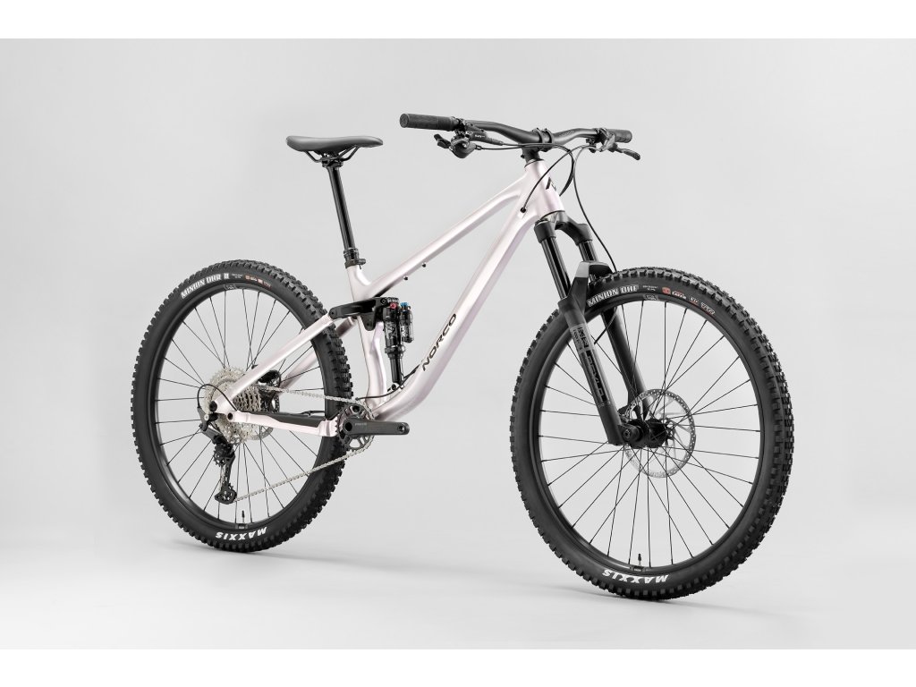 Norco Fluid A2 je celoodpružená trailová mašina navržená pro jezdce, kteří chtějí maximální kontrolu a pohodlí v náročných terénech. Model je postaven na lehkém hliníkovém rámu s progresivní geometrií, která zajišťuje stabilitu a agilitu při jízdě. Vidlice DVO Diamond D3 se 140mm zdvihem a zadní tlumič RockShox Super Deluxe Select+ se 130mm zdvihem společně poskytují plynulý a kontrolovaný pohyb na nerovném terénu. O hladký chod vaší jízdy se stará 12rychlostní sada ShiSramn NX Eagle s kazetou o rozsahu 11-50 zubů a spolehlivé čtyřpístkové brzdy TRP Slate EVO. Samozřejmostí je možnost instalace širokých plášťů pro lepší trakci na různorodém povrchu. Vychutnejte si jedinečný prožitek z jízdy ve stylovém designu.
