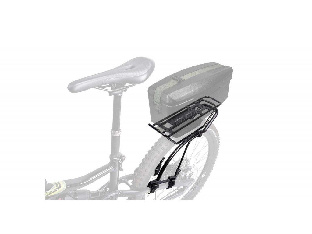Prodloužená verze perfektního prostorného nosiče se systémem quick-mount ideální pro využití na celoodpružených MTB nebo na rámech bez montážních otvorů. Tento univerzální zadní nosič je vybaven inovativní horní deskou, která se nastavuje nezávisle na úhlu rámových trubek. Integrovaný systém QuickTrack® umožňuje snadnou manipulaci s brašnami Topeak TrunkBags. Inovativní systém upevnění s popruhy na suchý zip se pevně zaklesne, aby se náklad udržoval stabilní a zároveň umožňuje montáž na širokou škálu kol. Nosič je také kompatibilní s brašnami se systémy KLICKfix® / RackTime® Snapit nebo Vario.