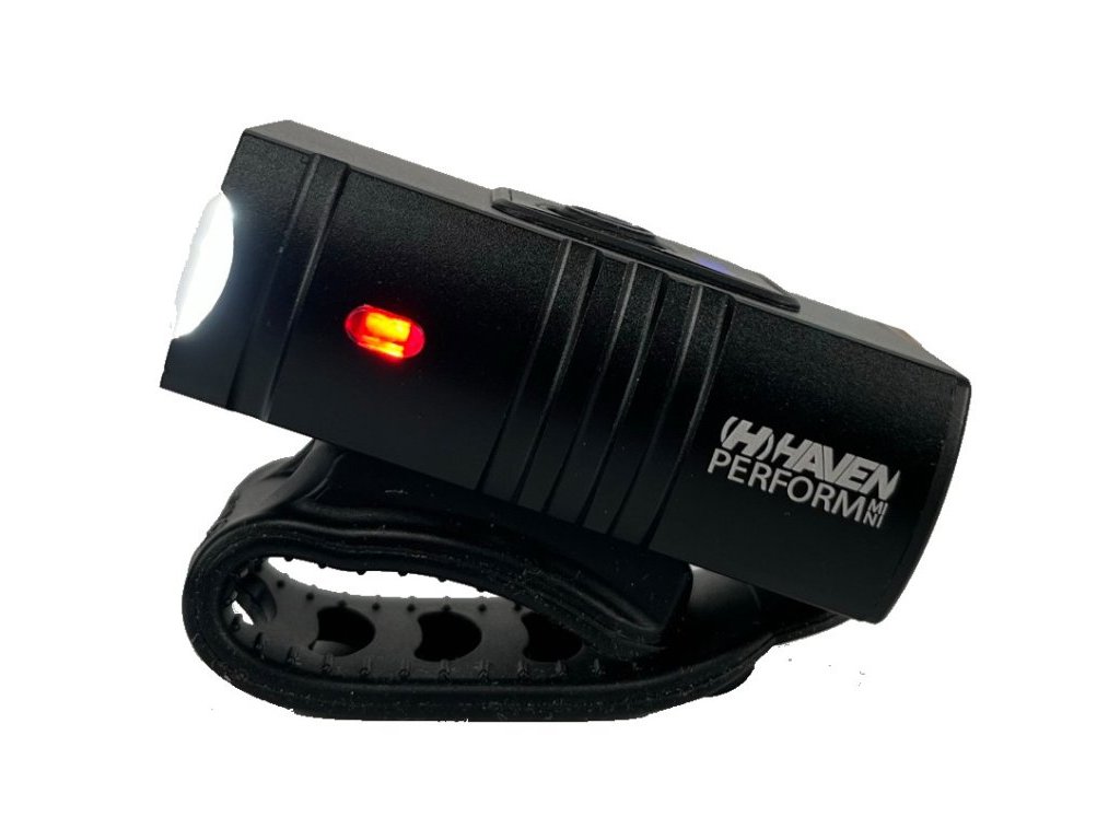 Silné, ve všech směrech nastavitelné přední světlo s jistým uchycením na řidítka i vidlici je vybaveno dvěma silnými LED diodami, baterií nabíjenou přes USB a šesti režimy svícení: