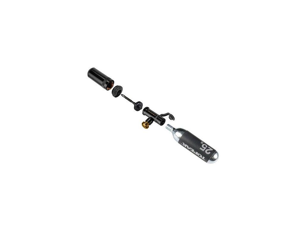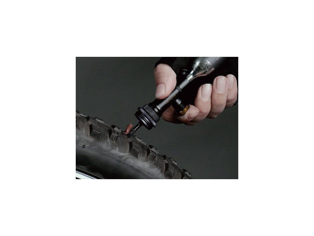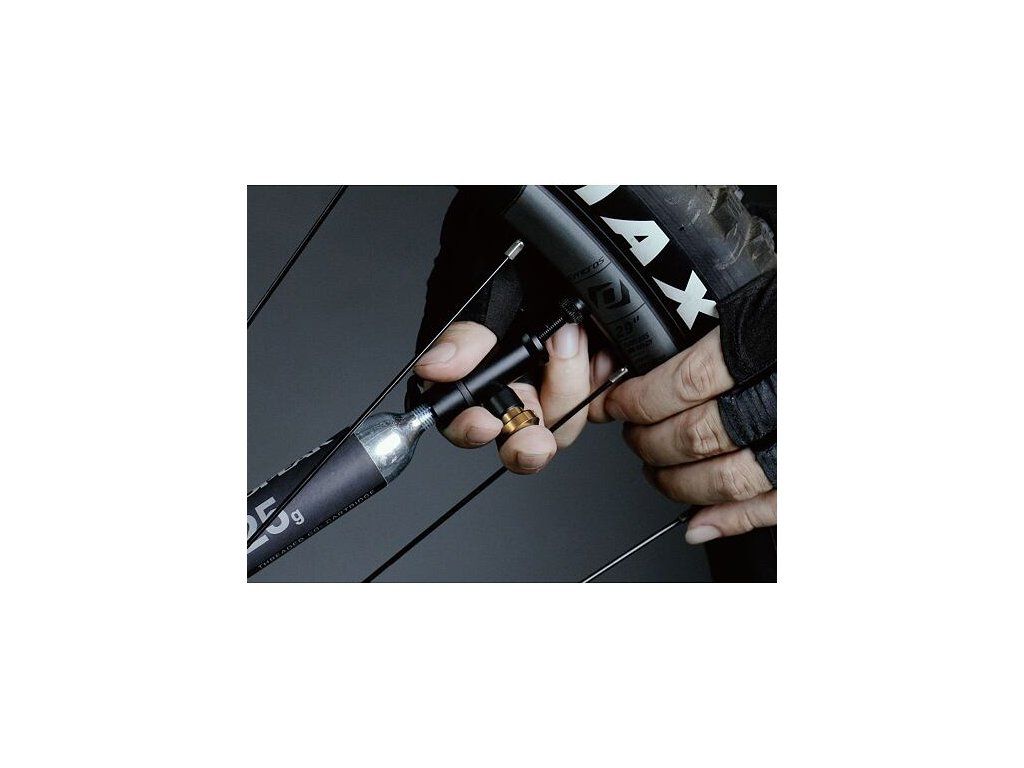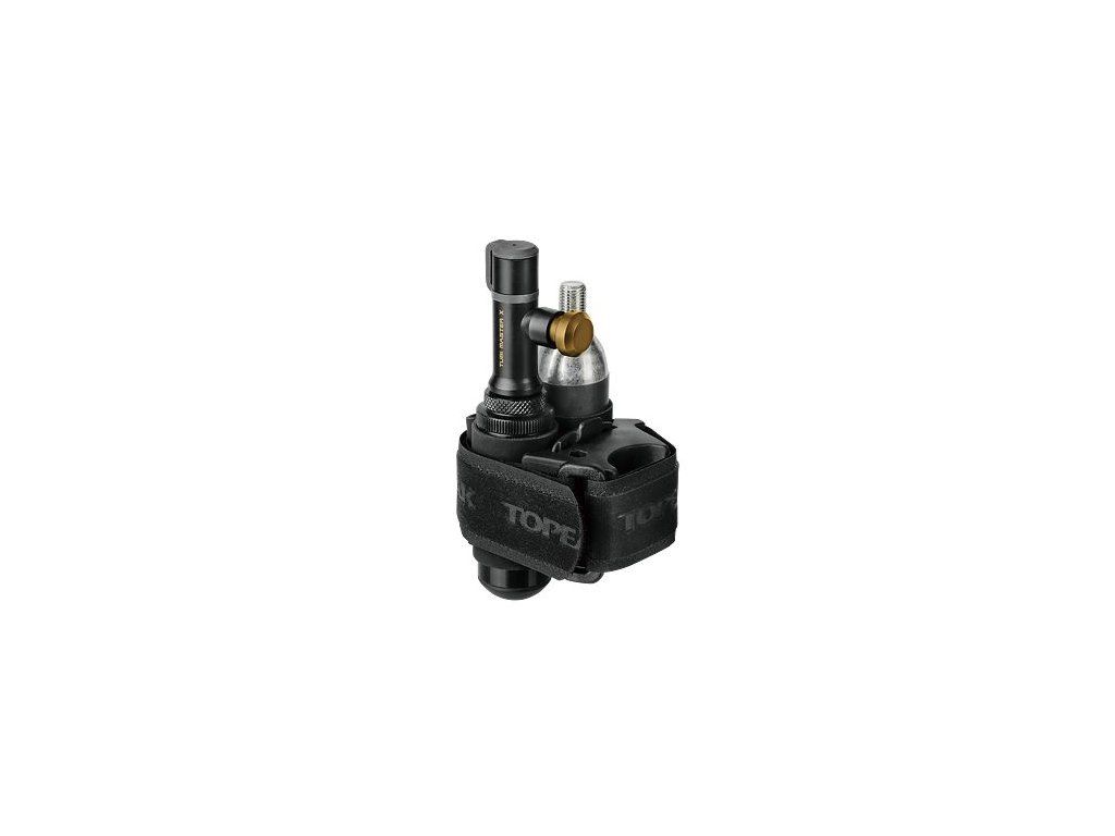 Sada na opravu a huštění bezdušových pneumatik mikro velikosti obsahující pokročilou hlavu vstřikovače CO2 2 v 1, která opraví defekt a nafoukne bezdušovou pneumatiku v jednom kroku masivním vzduchem nebo ji lze jednoduše použít jako tradiční hustilku CO2 přes dřík ventilu. Hlavice hustilky je kompatibilní s ventilky Presta i Schrader a přiložený montážní popruh se připevňuje k sedlovce nebo k rámu a může nést jednu nebo dvě 25g CO2 bombičky.