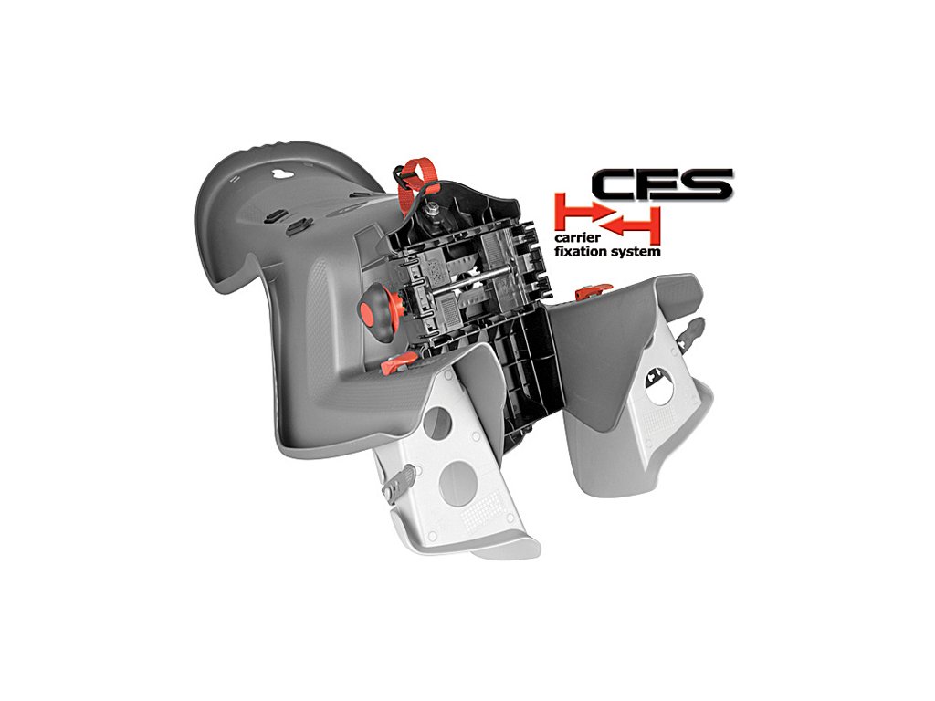 - Montáž: upevnění dětské sedačky bez nářadí, spodní část sedačky se pevně připojuje k nosiči pomocí kolečka