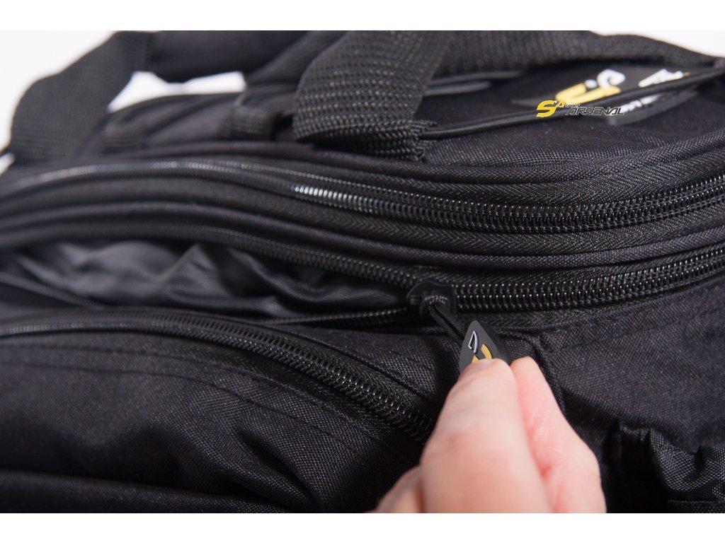 brašna má jednu velkou vnitřní a čtyři postranní vnější kapsy, uzavíratelné zipem, pro praktické rozložení nákladu