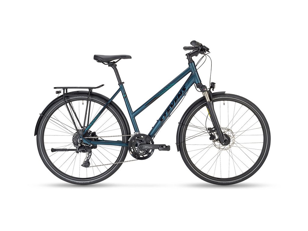 STEVENS 6X Tour je ideální volbou pro ty, kdo hledají univerzální trekingové kolo s komfortní výbavou. O hladké překonávání nerovností se stará odpružená vidlice SR Suntour s funkcí lockoutu a 63mm zdvihem. Pohon Shimano CUES U6000 nabízí široký rozsah 2×10 převodů pro všechny typy terénu. Hydraulické kotoučové brzdy Tektro zajistí bezpečné zastavení za každého počasí. Osvětlení Busch & Müller s funkcí denního svícení a stání zaručuje výbornou viditelnost i za tmy. Kolo je osazeno plášti Schwalbe G-One Allround, které výborně kombinují valivý odpor a přilnavost.