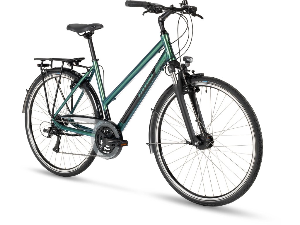 STEVENS Albis představuje cenově dostupný vstup do světa trekingových kol, který překvapí svou výbavou i jízdním komfortem. Lehký hliníkový rám s pohodlnou geometrií doplňuje odpružená vidlice SR Suntour CR8-V s 50 mm zdvihu, která pohlcuje nerovnosti a zvyšuje komfort na horších cestách.