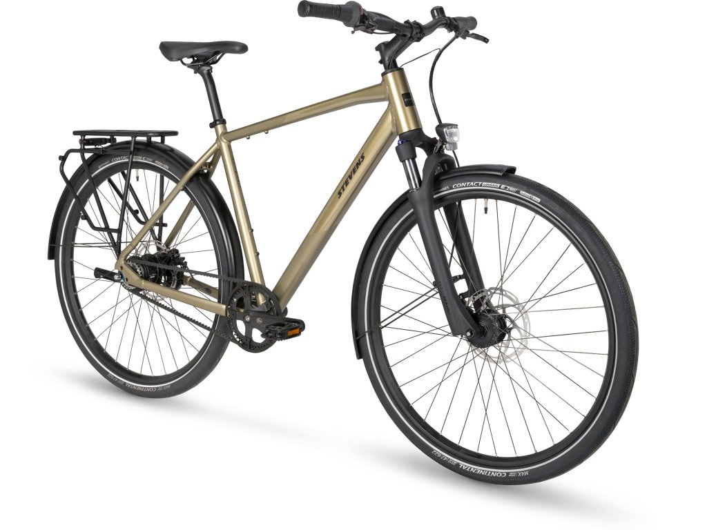 STEVENS Aviolo 5.2 nabízí ideální vstup do světa trekingových kol s nízkými nároky na údržbu a vysokou mírou pohodlí. Hliníkový rám v kombinaci s odpruženou vidlicí SR Suntour NVX32 (63 mm) zajišťuje komfortní jízdu i na hrubším povrchu. O spolehlivé řazení se stará nábojová převodovka Shimano Nexus s osmi rychlostmi a bezúdržbovým řemenem Gates CDN. Kolo je vybaveno výkonným LED osvětlením napájeným dynamem v předním náboji, hydraulickými kotoučovými brzdami Tektro a 47mm plášti Continental pro jistý kontakt s vozovkou. Díky dětskému nosiči Snap-it 2.0 (nosnost 30 kg) a široké nabídce velikostí včetně dámských rámů se Aviolo 5.2 hodí opravdu pro každého.