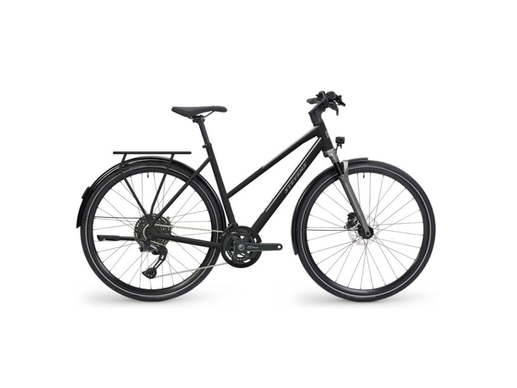 STEVENS Aviolo 6.1 je všestranné a spolehlivé trekingové kolo, které klade důraz na komfort a praktičnost. K dispozici je v pánském (HT), nízkém (LT) i dámském rámu (Forma), a to v široké škále velikostí – takže si vybere opravdu každý. O plynulé řazení se stará 2×9 převodový systém Shimano CUES U4000, doplněný výkonnými hydraulickými brzdami Tektro. O pohodlnou jízdu na horších cestách se postará ocelová odpružená vidlice SR Suntour s 63 mm zdvihu a 47mm pláště Continental Contact Urban přidávají jistotu i komfort. Nechybí ani výbava pro každodenní provoz – osvětlení s napájením z dynama, blatníky a nosič.