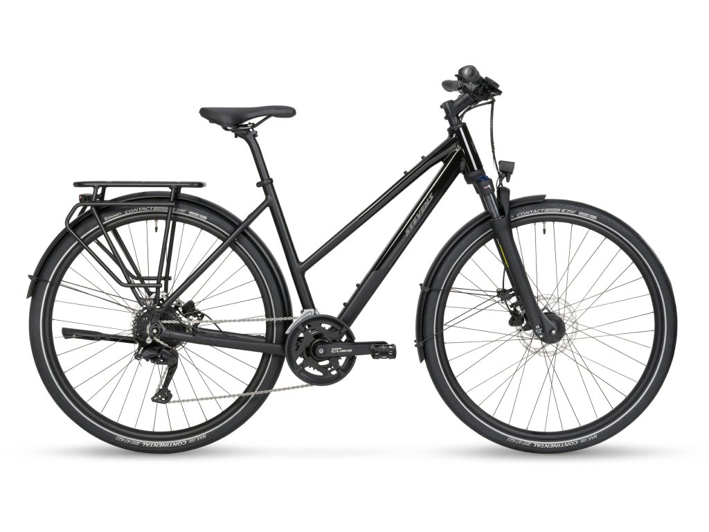 STEVENS Aviolo 6.1 je všestranné a spolehlivé trekingové kolo, které klade důraz na komfort a praktičnost. K dispozici je v pánském (HT), nízkém (LT) i dámském rámu (Forma), a to v široké škále velikostí – takže si vybere opravdu každý. O plynulé řazení se stará 2×9 převodový systém Shimano CUES U4000, doplněný výkonnými hydraulickými brzdami Tektro. O pohodlnou jízdu na horších cestách se postará ocelová odpružená vidlice SR Suntour s 63 mm zdvihu a 47mm pláště Continental Contact Urban přidávají jistotu i komfort. Nechybí ani výbava pro každodenní provoz – osvětlení s napájením z dynama, blatníky a nosič.