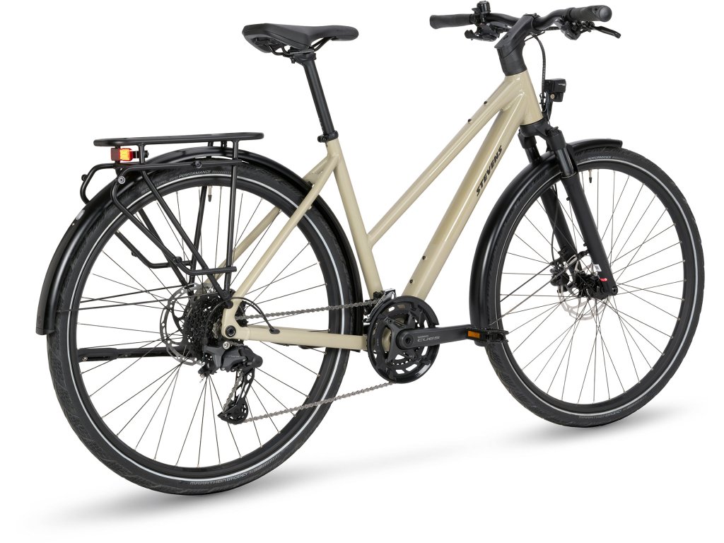 STEVENS Aviolo 7.1 je ideální volbou pro ty, kteří hledají kvalitní trekingové kolo s robustní výbavou a komfortem na každém kilometru. V nabídce jsou dva typy rámu HT a LT a široká paleta velikostí. Vzduchová odpružená vidlice SR Suntour NRX se 60 mm zdvihu zajišťuje hladký průjezd nerovnostmi, zatímco pohon Shimano CUES U6000 s 2×10 převody se postará o efektivní jízdu ve městě i mimo něj. Hydraulické brzdy Tektro zajistí bezpečné zastavení, zatímco výkonné světlo Trelock s denním svícením a zadní B+M Xeltec Mini dělají z Aviola plně připraveného parťáka pro každodenní provoz.