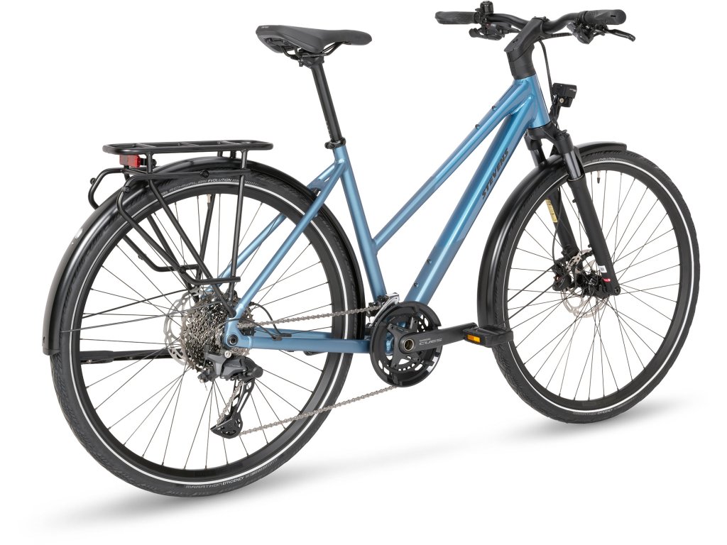 STEVENS Aviolo 8.1 kombinuje komfort a praktičnost s prémiovou výbavou, ideální pro každodenní využití i delší výlety. Lehký hliníkový rám je dostupný v provedení HT, LT a v široké škále velikostí. O pohodlnou jízdu se stará vzduchová vidlice SR Suntour NRX se zdvihem 60 mm, zatímco 2×11 převodový systém Shimano CUES U6000 umožňuje hladké řazení i v náročnějším terénu. Tektro hydraulické brzdy dodávají jistotu v každé situaci a spolehlivé pláště Schwalbe Marathon Efficiency zaručí pohodlí i na delších trasách. Nechybí ani výkonné LED osvětlení s denním svícením.
