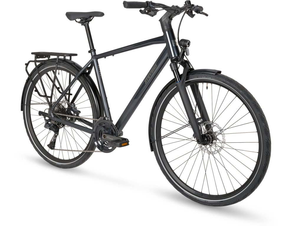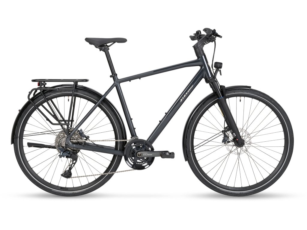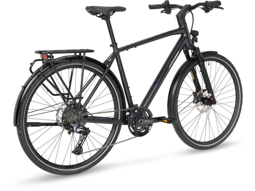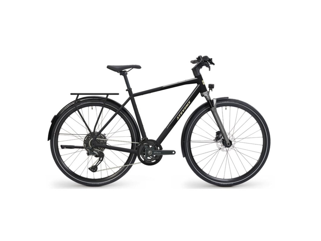 STEVENS Aviolo 9.1 představuje vrchol nabídky trekingových kol značky STEVENS. Tento univerzální model je dostupný v rámových verzích HT a LT a v několika velikostech, aby sedl opravdu každému. O plynulý přenos síly a přesné řazení se stará 2×11 pohon Shimano CUES U8000, doplněný výkonnými hydraulickými brzdami stejné řady. Pohodlí na každé cestě zajišťuje vzduchová vidlice SR Suntour NRX se zdvihem 60 mm a pláště Schwalbe Marathon Efficiency o šířce 45 mm. Skvělou viditelnost zajišťuje výkonné LED osvětlení od Supernovy s 205 lumeny.