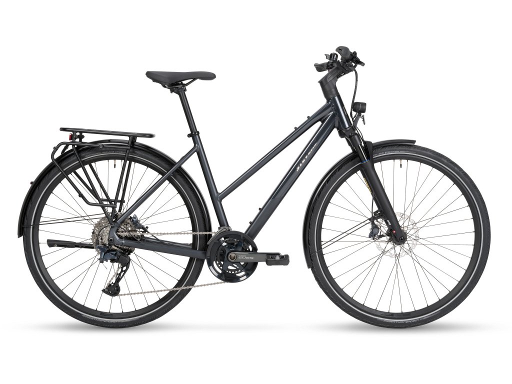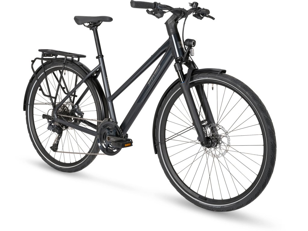 STEVENS Aviolo 9.1 představuje vrchol nabídky trekingových kol značky STEVENS. Tento univerzální model je dostupný v rámových verzích HT a LT a v několika velikostech, aby sedl opravdu každému. O plynulý přenos síly a přesné řazení se stará 2×11 pohon Shimano CUES U8000, doplněný výkonnými hydraulickými brzdami stejné řady. Pohodlí na každé cestě zajišťuje vzduchová vidlice SR Suntour NRX se zdvihem 60 mm a pláště Schwalbe Marathon Efficiency o šířce 45 mm. Skvělou viditelnost zajišťuje výkonné LED osvětlení od Supernovy s 205 lumeny.