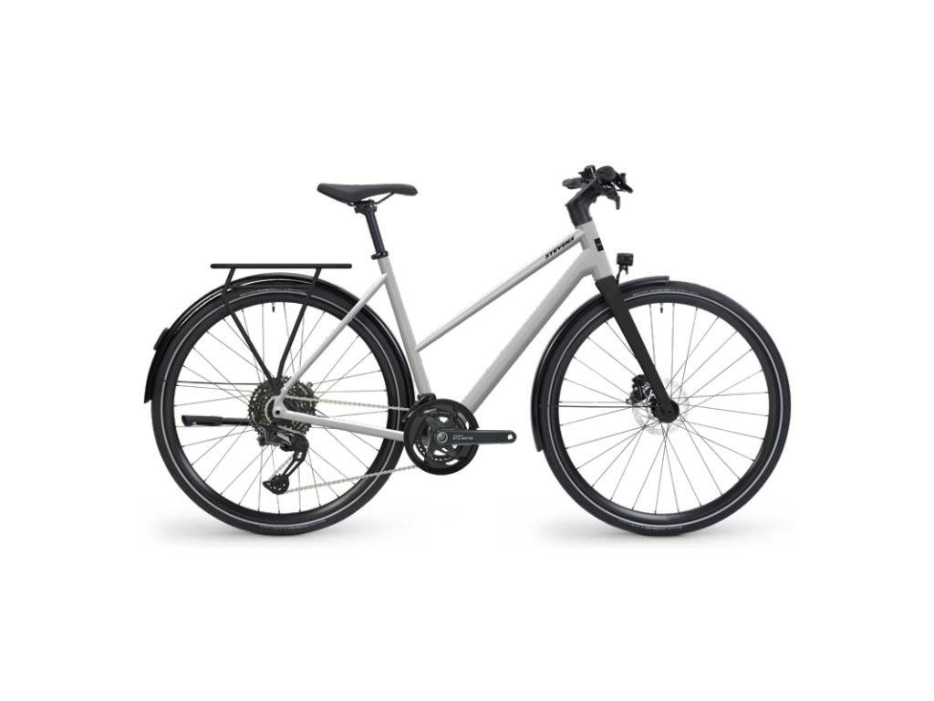 STEVENS Caleta 7.1 kombinuje sportovní jízdní projev s každodenní praktičností. Lehký rám z hliníkové slitiny 6061 a pevná vidlice zajišťují přesné ovládání, zatímco pohon Shimano CUES U6000 v konfiguraci 2x10 nabízí široký rozsah převodů pro jízdu ve městě i v kopcovitém terénu. Hydraulické brzdy Tektro Volans s kotouči 180 mm přinášejí jistotu při každém zastavení. Kolo je vybaveno kvalitním osvětlením napájeným dynamem a univerzálními 45mm plášti Schwalbe, které zvládnou asfalt i šotolinu. Ergonomický kokpit zajišťuje pohodlí i na delších trasách.