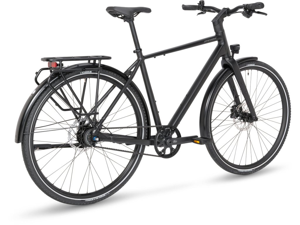 STEVENS Caleta 7.2 je spolehlivý parťák pro každodenní cesty po městě, výlety i víkendové túry. Lehký hliníkový rám s pevnou vidlicí nabízí sportovně střiženou geometrii, která kombinuje pohodlí s efektivitou šlapání. O bezhlučný a bezúdržbový pohon se stará kombinace řemenového převodu Gates CDX a 11rychlostní nábojové převodovky Shimano Alfine. O bezpečné zastavení se postarají hydraulické kotoučové brzdy Shimano Deore s velkými 180mm kotouči.