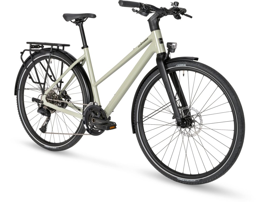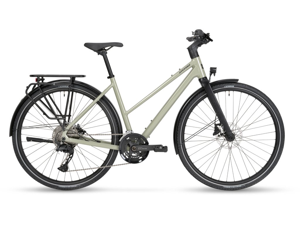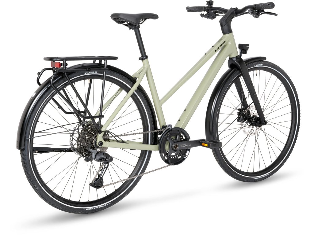 STEVENS Caleta 8.1 je všestranné trekingové kolo určené pro ty, kdo hledají maximální kvalitu a spolehlivost na každé cestě. Hliníkový rám v kombinaci s lehkou vidlicí STEVENS S-Lite zajišťuje pevnost a stabilitu. Pohon Shimano CUES U6000 s 2x11 převody a širokým rozsahem 11–45 zubů zvládne městský provoz i náročnější trasy. Brzdy Shimano Deore BR-MT410 s kotouči 180 mm poskytují bezpečné a plynulé zastavení. Kolo je vybaveno výkonným LED světlem Trelock a zadní svítilnou B+M Xeltec napájenými z nábojového dynama. Pláště Schwalbe G-One Overland šířky 45 mm dodávají jízdě pohodlí a jistotu i na nerovném povrchu.