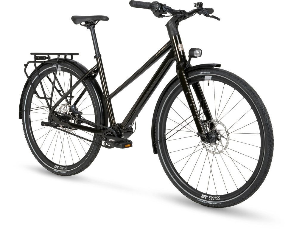 Stevens Caleta 9.2 představuje vrchol nabídky městských a cestovních kol této řady. Je postaveno na elegantním hliníkovém rámu a osazeno vysoce přesnou a extrémně odolnou 18rychlostní převodovkou Pinion P1.18. Spolu s karbonovým řemenem Gates a hydraulickými brzdami Shimano CUES U8000 nabízí tento model bezúdržbový provoz i v náročných podmínkách. Kvalitní kola DT Swiss HG 1800 Spline zvládnou vyšší zatížení, zatímco výkonné světlo Supernova M99 Pro zaručí perfektní viditelnost ve dne i v noci. Komfort a jistotu doplňují 45mm pláště Schwalbe G-One Overland a promyšlený kokpit Scorpo.