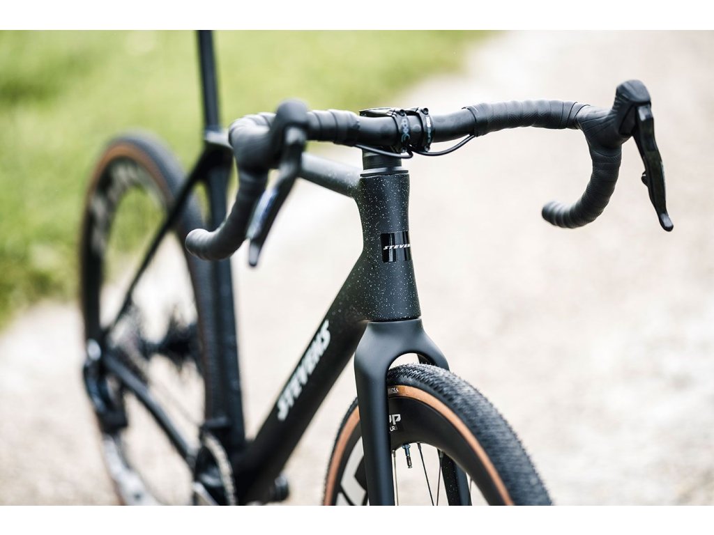 STEVENS Camino RS Pro AXS v matně šedé barvě Nightstone je ultimátní gravel stroj pro závodní nasazení i ambiciózní ježdění. Karbonový rám nové generace je postaven s důrazem na aerodynamiku – inspirován silničním modelem Arcalis a komfortním Xenith Endurance. Díky integrované objímce sedlovky, slopingové geometrii a čistým liniím nejen skvěle vypadá, ale také exceluje v rychlosti a ovladatelnosti.