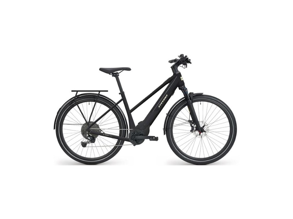STEVENS E-Comuna 7.4.1 je špičkově vybavený zástupce nové generace městských a výletních elektrokol, které staví na lehké konstrukci, výkonném pohonu a elegantním designu. Základ tvoří nově vyvinutý hliníkový rám 6061 Aluminium v moderní barvě Black Mercury, dostupný ve variantách High Tube (HT) i Low Tube (LT).