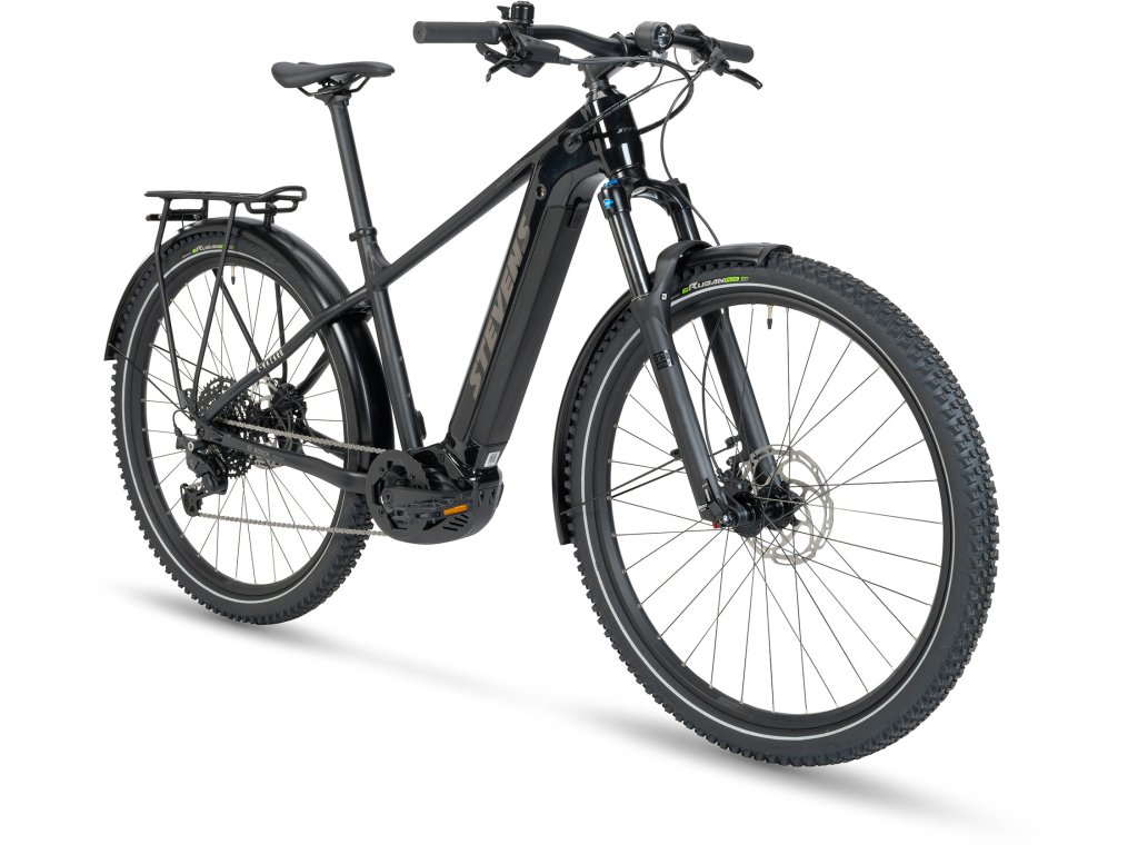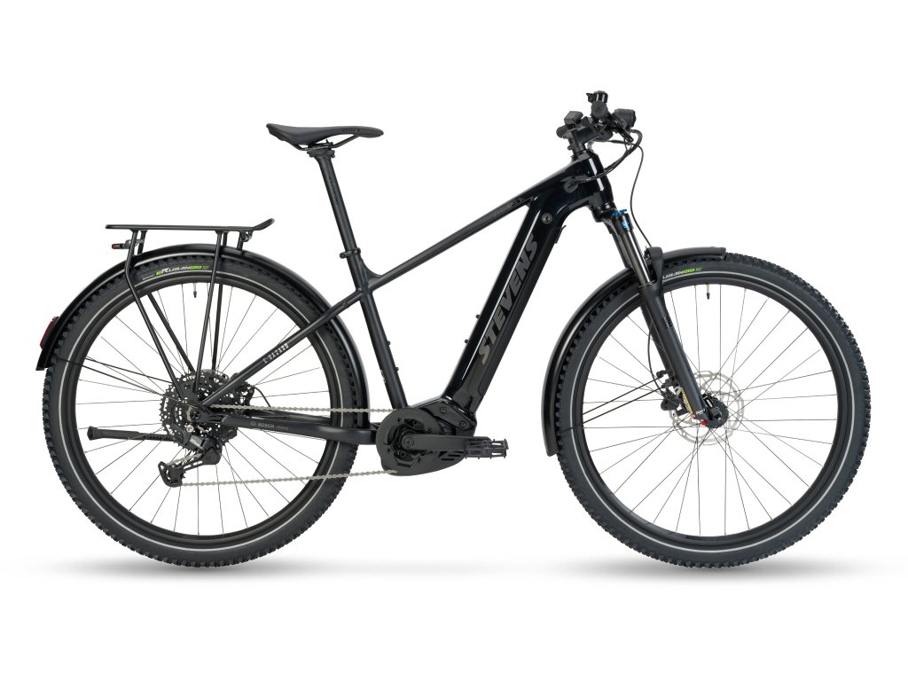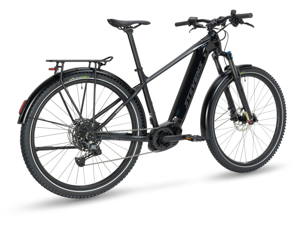 STEVENS E-Hazard FEQ Stealth Black spojuje pohodlný posed a stabilní 29″ kola s lehkým hliníkovým rámem a odpruženou vidlicí SR Suntour XCR34 se 120mm zdvihem. Díky tomu spolehlivě zvládá nerovnosti městských cest i zpevněné stezky a hodí se pro delší výlety s plnou výbavou.
