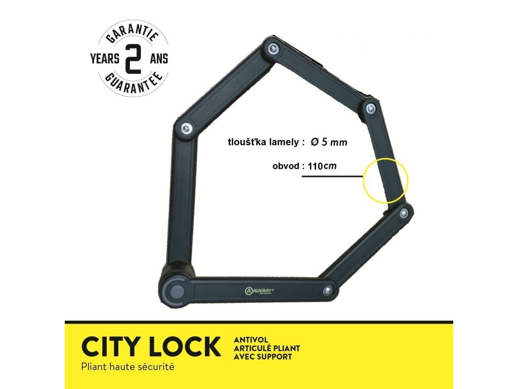 Auvray zámek skládací City Lock je ideálním řešením pro bezpečné uchycení vašeho kola ve městském prostředí. Délka 110 cm poskytuje dostatek prostoru pro pevné připevnění k pevným objektům. Robustní konstrukce s průměrem 5 mm zajišťuje spolehlivou ochranu proti odcizení. Jeho hmotnost 0,97 kg činí zámek dobrým kompromisem mezi bezpečností a přenosností.