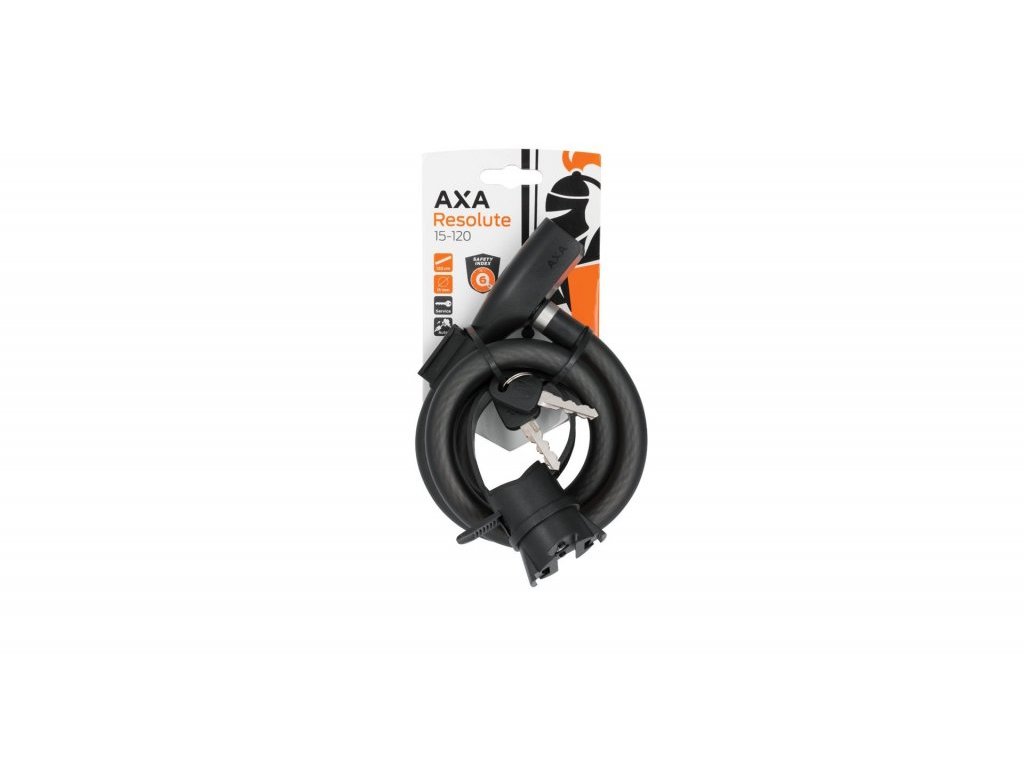 Klasický kabelový zámek vhodný pro krátkodobé uzamčení nebo jako dodatečná ochrana. Zamykací mechanismus se jednoduše zaklapne bez nutnosti otáčení klíčem. Zámek lze uchytit do rámového držáku. Klíče Resolute jsou symetrické, takže můžete zámek otevřít z libovolné polohy. Objednávání náhradního klíče je velmi snadné díky mezinárodní online službě AXA online. Zámky AXA Resolute jsou snadno rozpoznatelné díky sofistikovaným detailům z nerezové oceli a luxusní matné povrchové úpravě krytu kabelu. Zamykací mechanismus je chráněn před vlhkostí a nečistotami pomocí automatického krytu klíče. Tento kabelový zámek je dlouhý 120 cm a má průměr 15 mm.