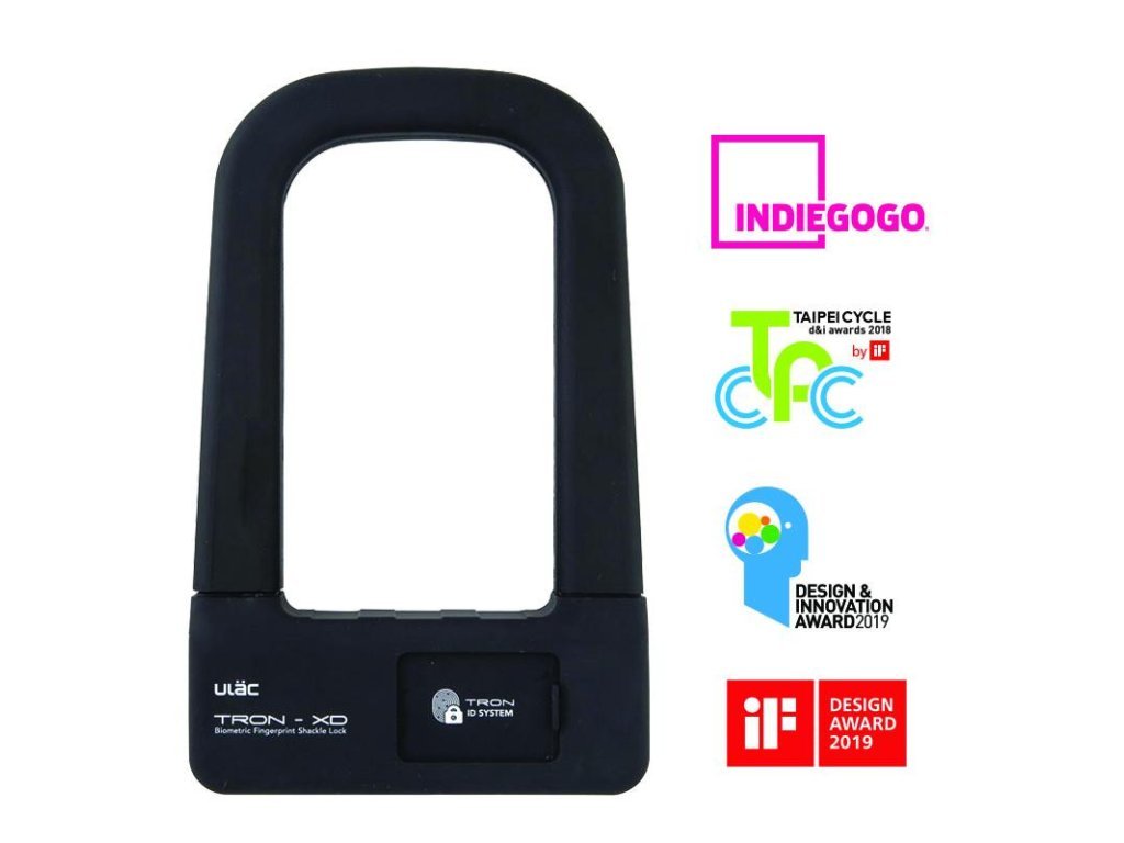 Lehký zámek s biometrickým ovládáním. Hliníkové tělo se silikonovým povrchem.